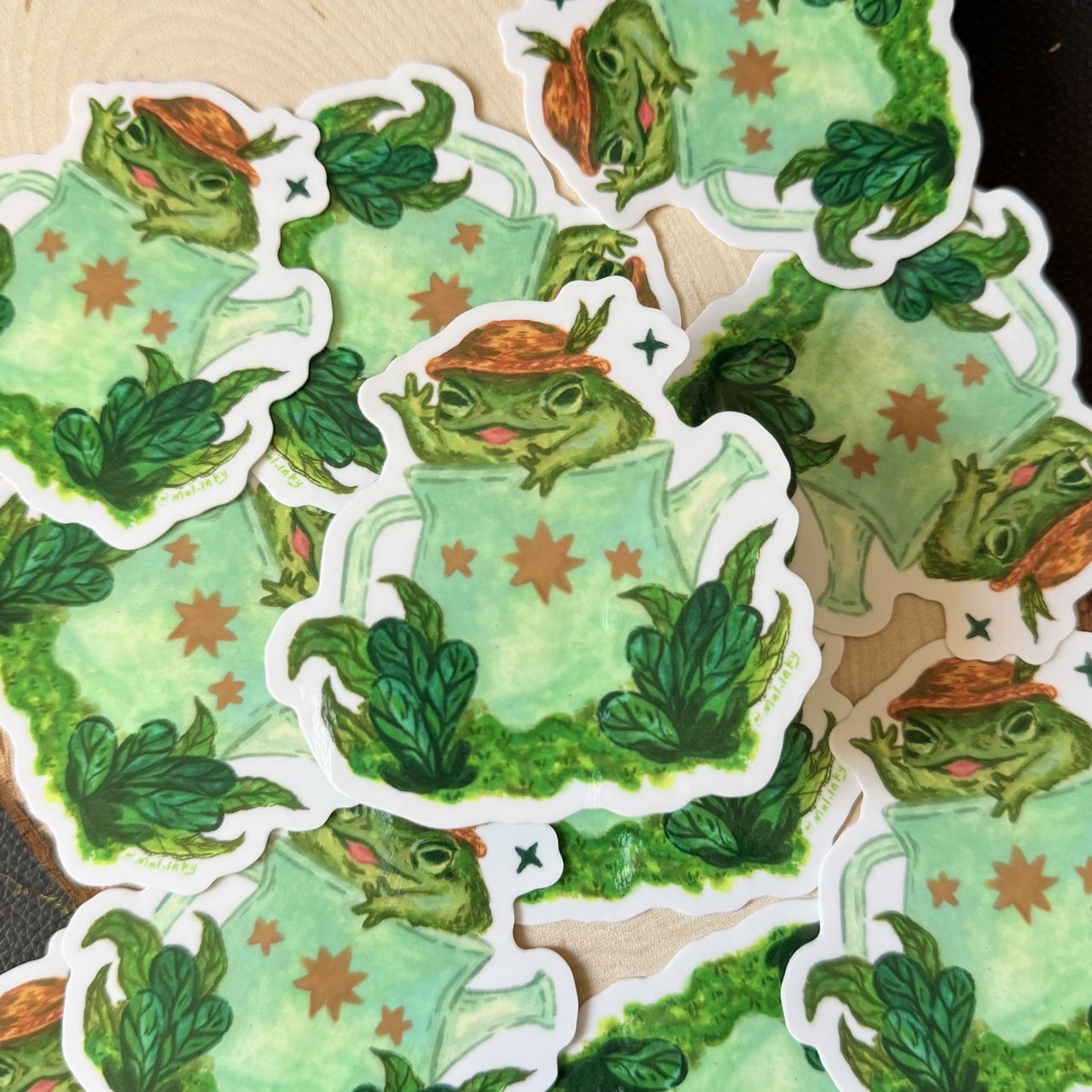 Frog sticker is printed on glossy, durable sticker paper and is 3.2" x 3.2". Stickers are all laminated making them waterproof and weather proof. Do not soak in water if applying to water bottles.